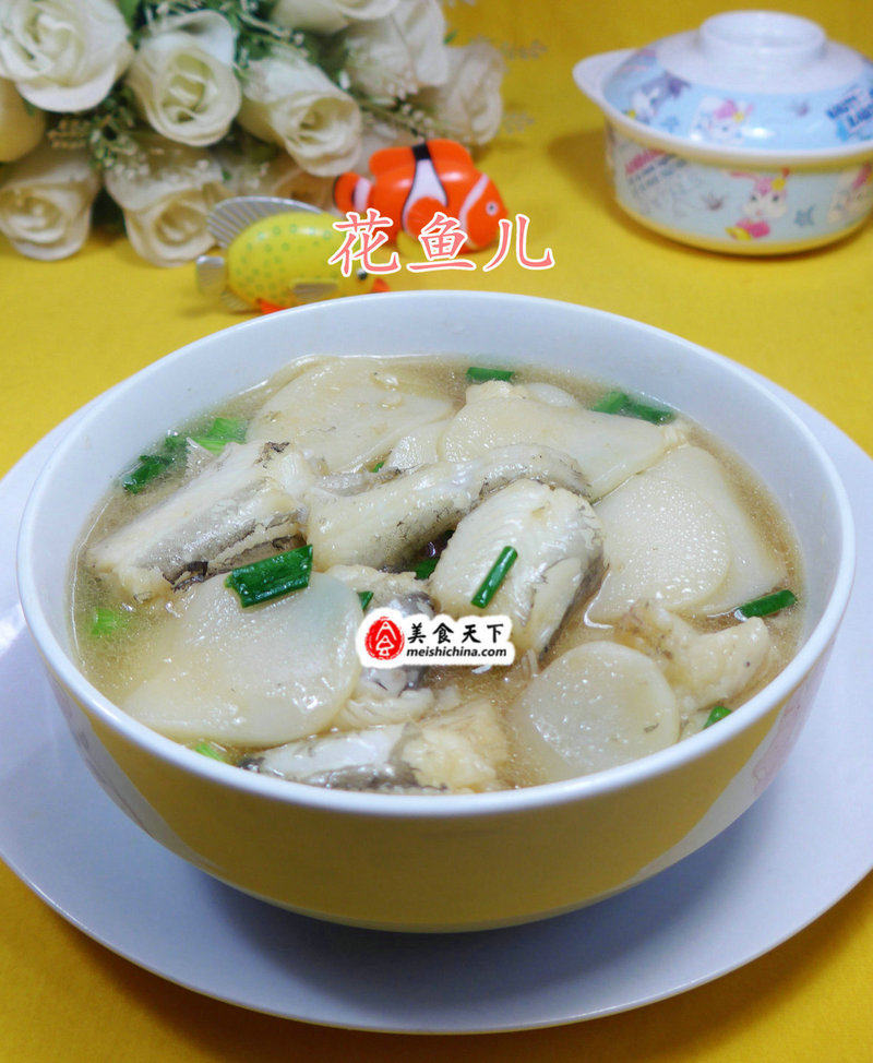 4:放入萝卜炒一下,倒入约4杯水煮至萝卜变软身。。