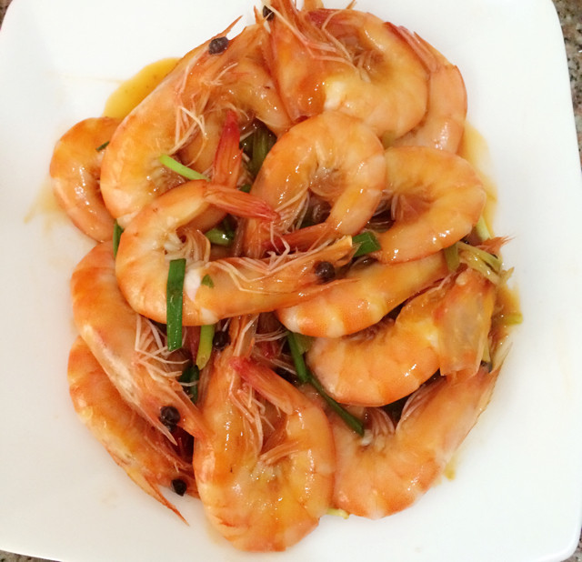 大虾300克;番茄酱30克;葱1棵;姜3克;