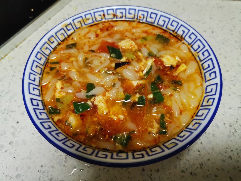 12:炒锅里加油烧开把西红柿炒出汁然后加入青菜,放入盐,花椒粉,鸡精,然后加入开水。