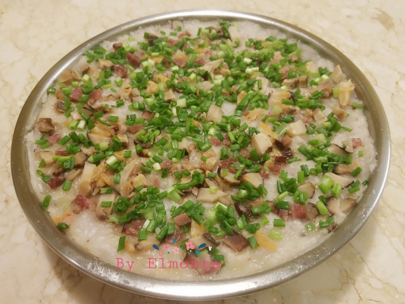 1、米粉糊拌为流动状态即可。2、咸度和甜度可根据自己喜欢的口味。3、凉后煎香更美味。4、蒸了4盘,可供4、5人食用。