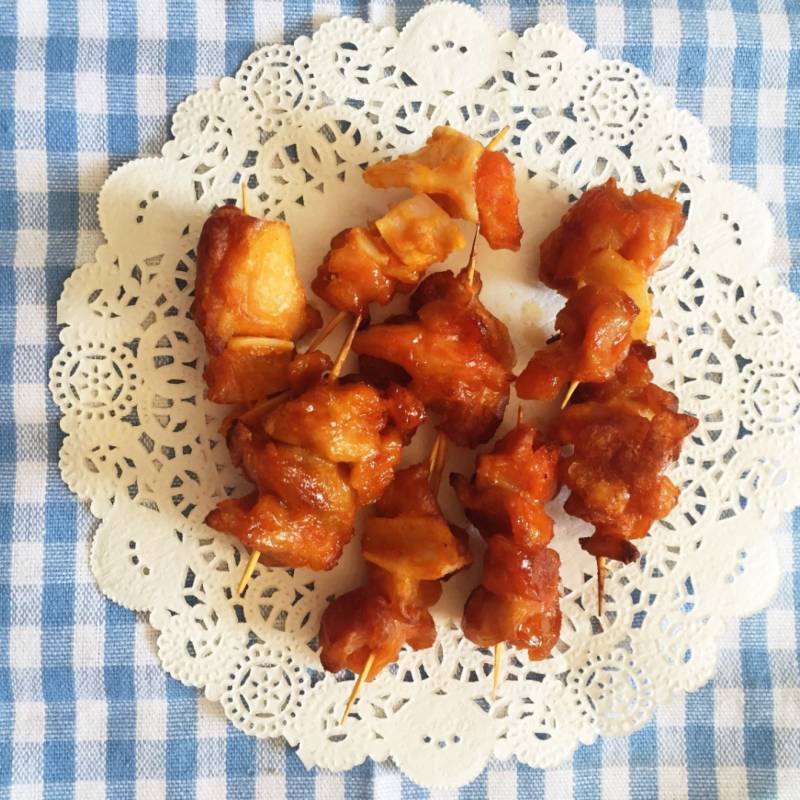 牙签鸡腿肉是一道家常下饭菜,将鸡腿肉切块后用牙签串起,经过腌制后煎炒至外焦里嫩。做法简单,鸡肉香嫩入味,酱汁浓郁,特别适合搭配米饭食用。