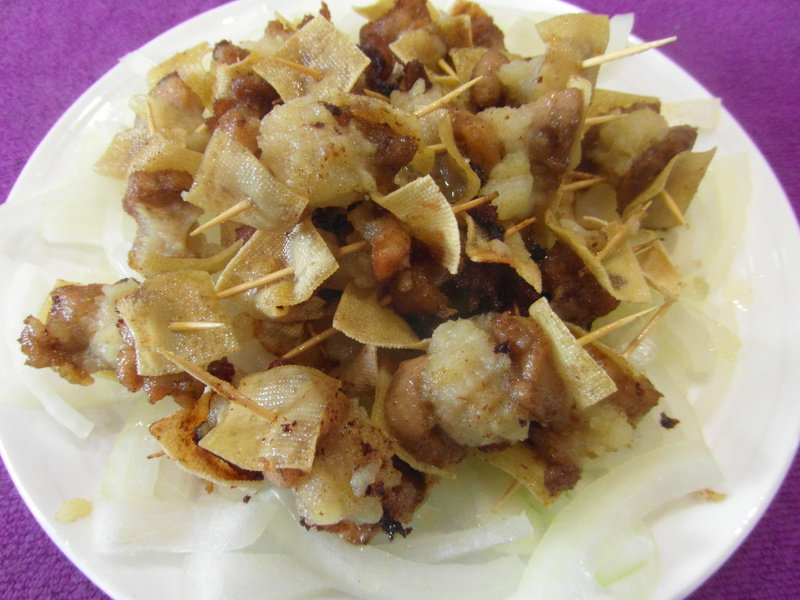 花椒适量;辣椒适量;嫩肉粉适量;盐适量;孜然适量;芝麻适量;鸡精适量;