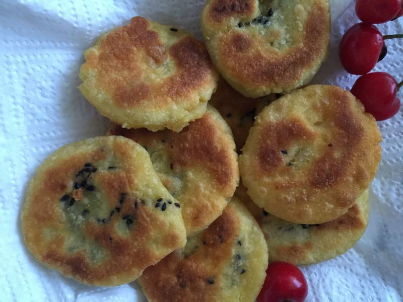 7:锅中放少量的橄榄油稍加热,放入小饼进行煎制10-15分钟。