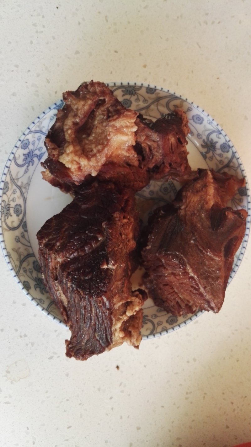 牛肉500g;生姜一小块;陈皮一小块;丁香3g;老抽一大勺;八角两个;花椒3g;
