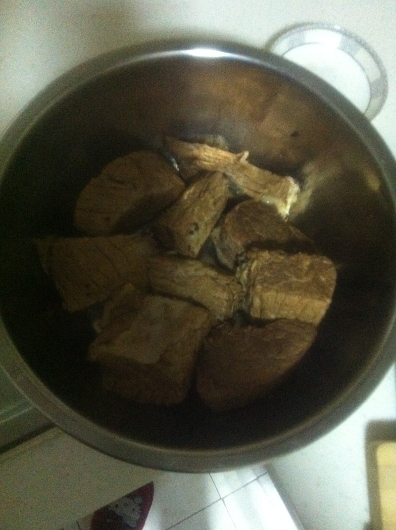3:电压力锅,用豆/蹄筋那一档。可以炖好了以后再泡两小时,捞出备用。如果泡时间长了水分太多也不好吃。
