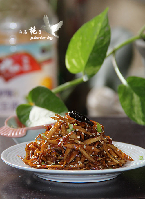 2:杏鲍菇洗干净后切成丝。