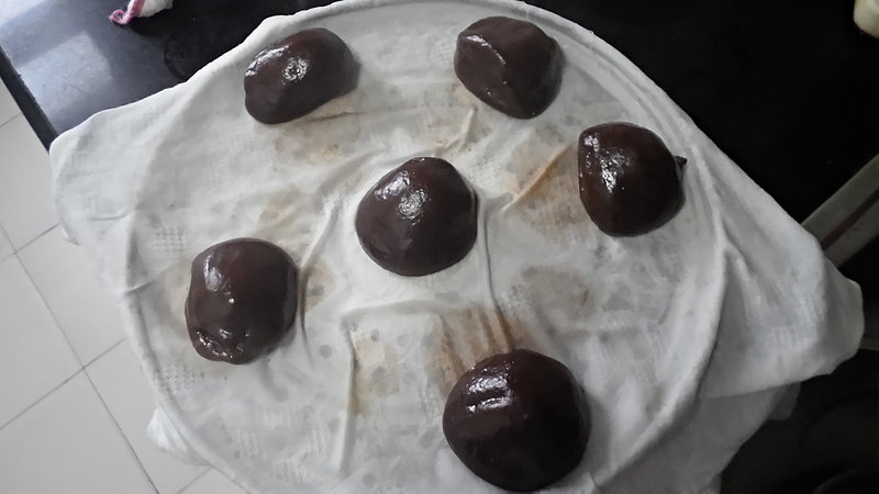 3:将搓好的豆沙馅儿(20g一个)包入面团中
