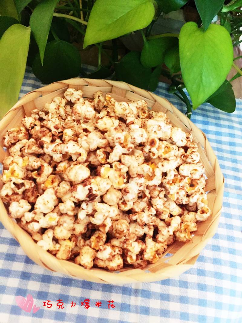 8:加入爆好的爆米花翻炒均匀裹上巧克力糖液,晾凉后,密封保存,尽快吃完。