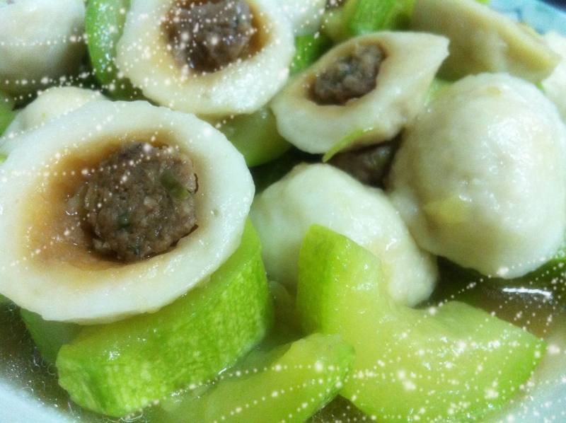 5:接着将包心鱼丸倒入,加入盐,翻炒均匀。