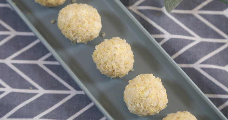 8:将丸子表面均匀的裹上稼祺藜麦。