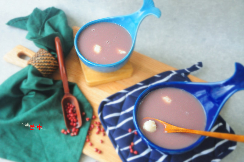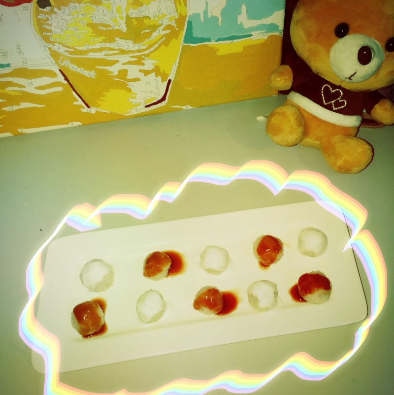 10:放入已经打好的红小豆浓汤里,在这炎炎夏季,放入冰箱后食用,口感更佳。