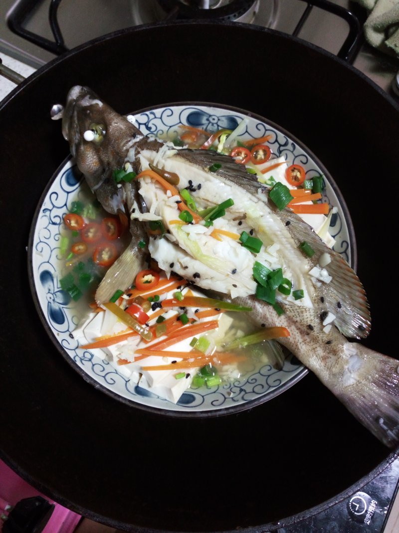 没有想到我这尾鱼太大,家里没有更大的鱼盘和蒸锅,也缺少葱丝配合,摆盘很丑,但是味道真的很鲜美。
