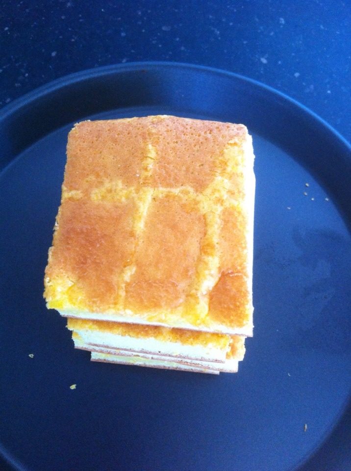7:交叉组合。面与面之间要刷一层鸡蛋液作为粘合剂,组装好后放入冰箱冷冻室冷冻半小时。