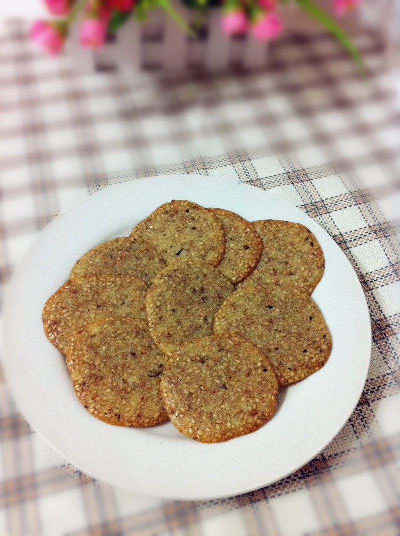 低筋粉45克;糖粉35克;芝麻40克;蛋清50克;