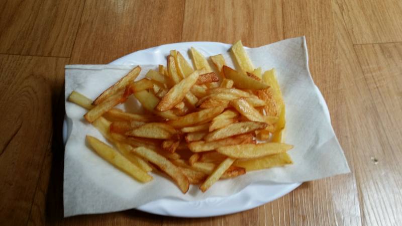 因为孩子一大早突然说想吃薯条,这个没经过冷冻环节,冻过的会更好。冷冻时要保证水份沥干,平铺在托盘上,油最好用清淡的玉米油,豆油要差一些。