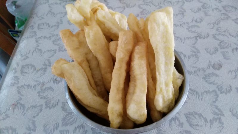 1面和成面团后必须加少量油揉匀,关乎炸好后的口感。2做好的油条胚不能太细,太细没有膨胀的空间,不好看也不好吃。