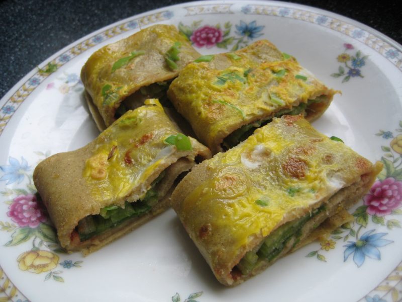 12:卷好,切开即可趁热吃了。