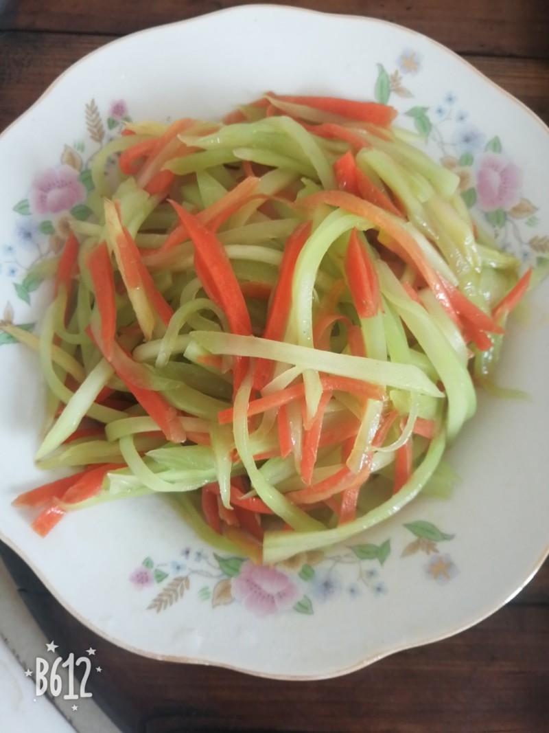 1:把莴苣、胡萝卜分别切成丝。