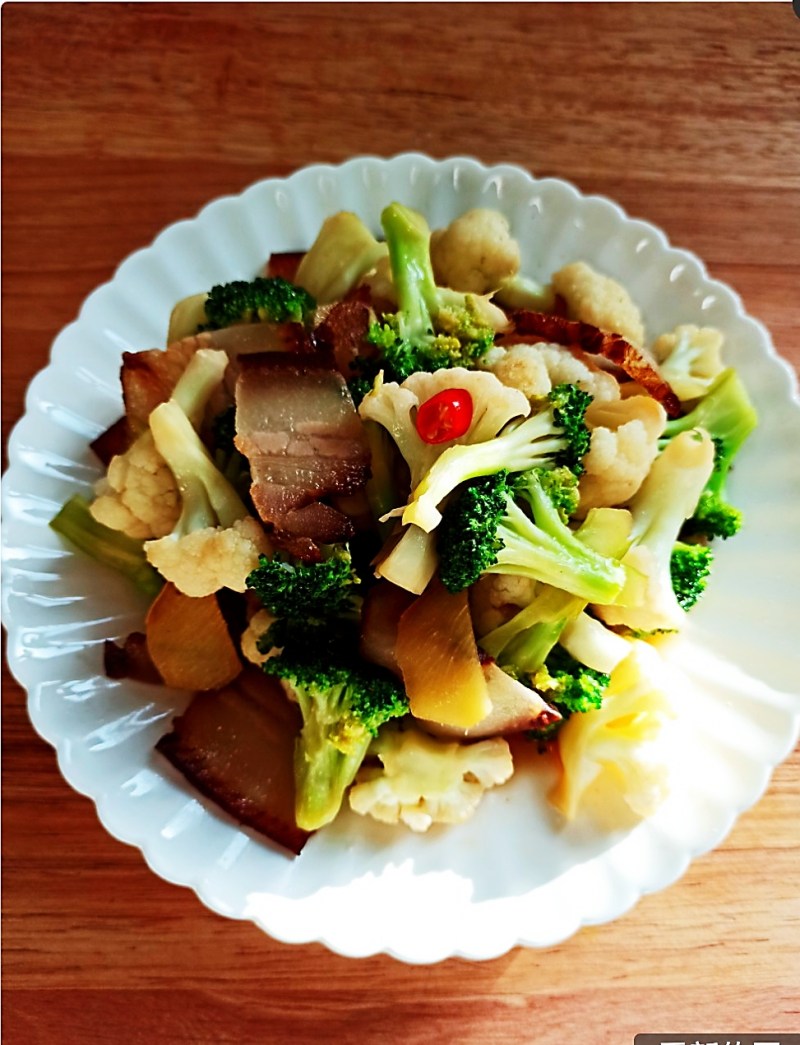腊肉炒双色菜花