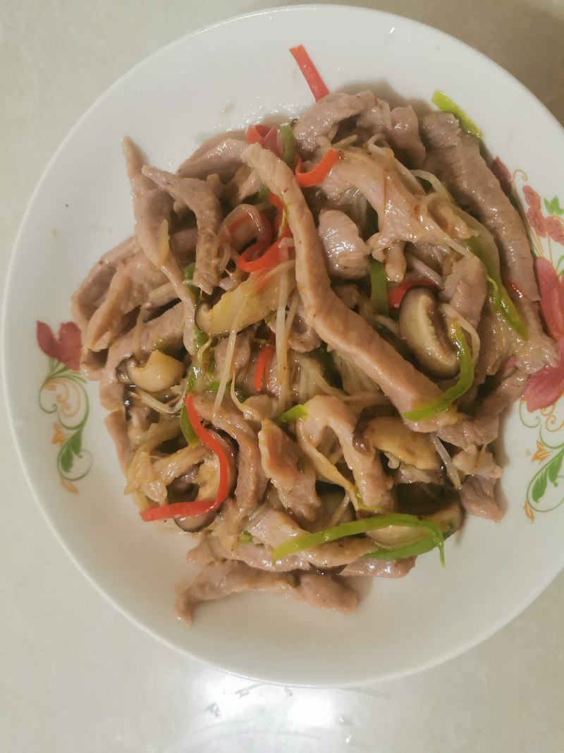猪里脊肉250g;豆芽250g;青红椒各50g;香菇3个;
