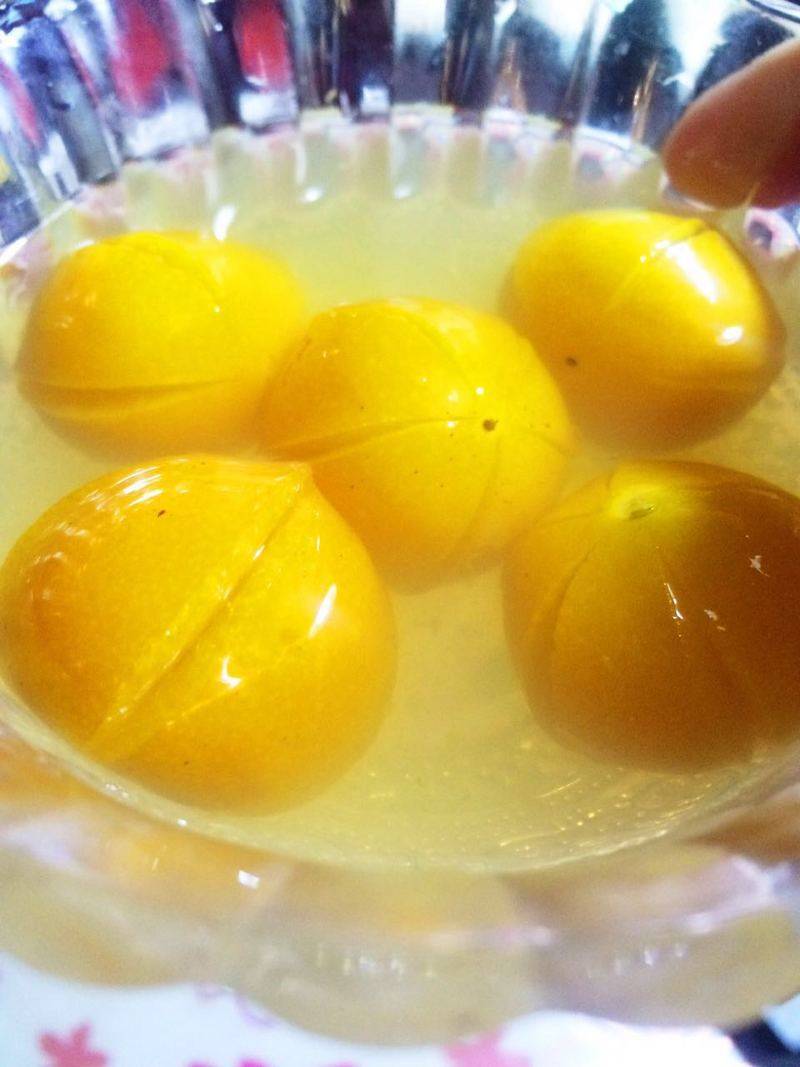 2:金桔冷水放锅中,水开煮1-2分钟去苦涩味。