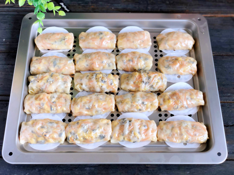 7:蒸熟出锅,蒸好的素菜卷晶莹剔透,有点肠粉的感觉,看着就有食欲。