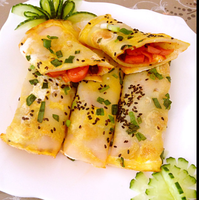鸡蛋薄饼不知道怎么做的,可以直接在美食网上面搜哟,做法都很详细的。