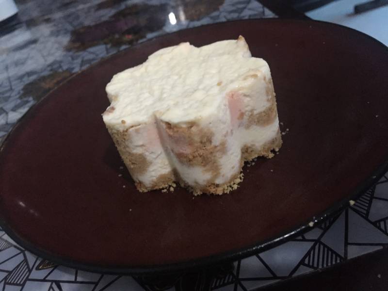 4:取出磨具加入饼干,用推具按紧,放冰箱冷藏10分钟