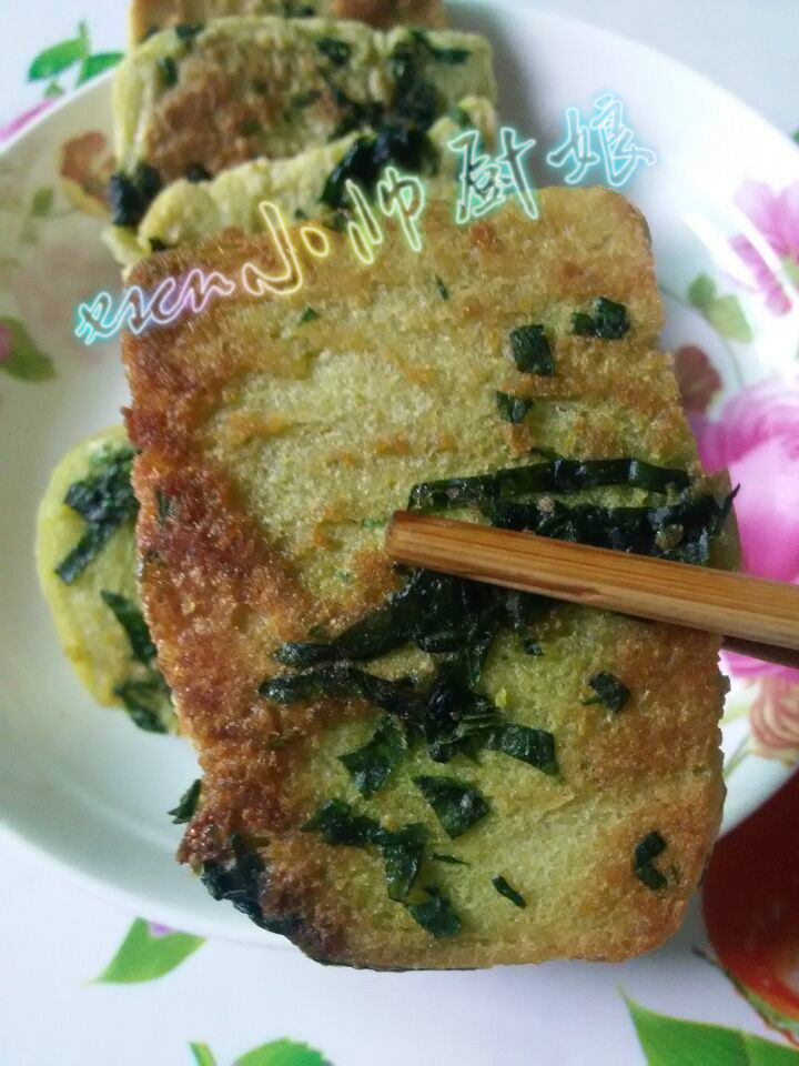 3:鸡蛋打散,放入盐和五香粉,加入切好的菠菜搅拌均匀,然后把馒头片沾满蛋液