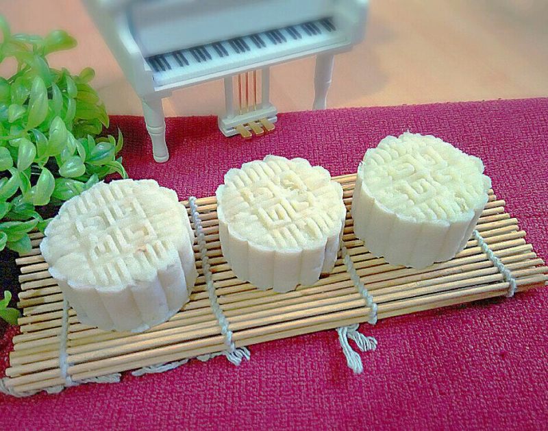 7:包好之后放入做做月饼的模具中,按出形状即可!