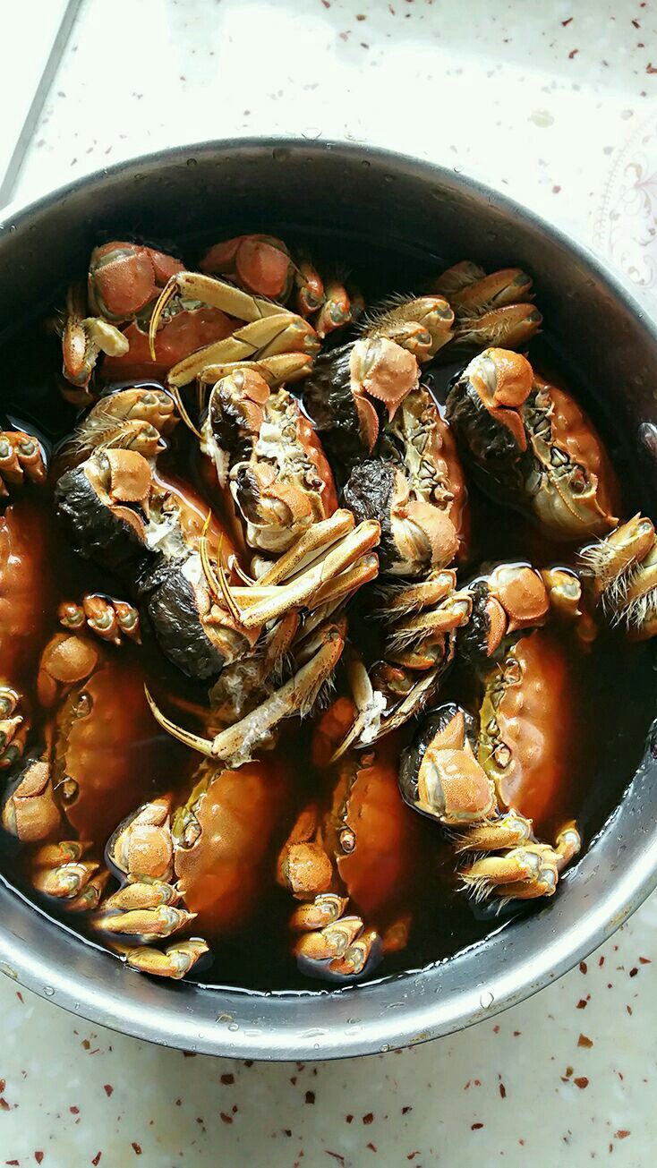 4:螃蟹浸在卤汁里,8个小时后取出直接食用,味道棒极了