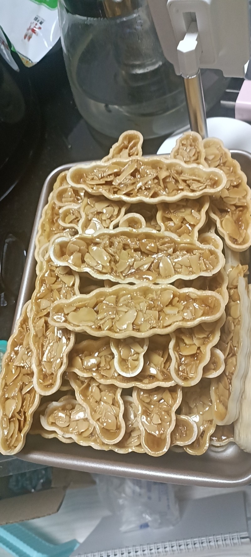 1:春天已走远,我的餐桌依然春意盎然~男女老少都爱的零食小嘴~焦糖杏仁糯米船焦脆可口,满嘴酥香,好吃得停不下来可以根据个人口感喜好添加不同的坚果比如:杏仁,花生碎,芝麻,瓜子仁,黑芝麻等。为了松脆的口感建议用坚果,烤了会更脆的食材。此次我有添加了混合果干的口味,不过没有单一的坚果好吃。不过整体来说非常的美味。想吃的可以试试哈。