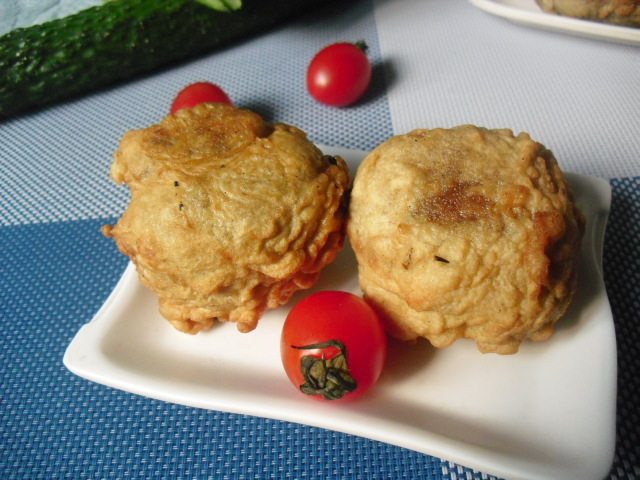 5:把做好的糯米团放入面糊中裹好.