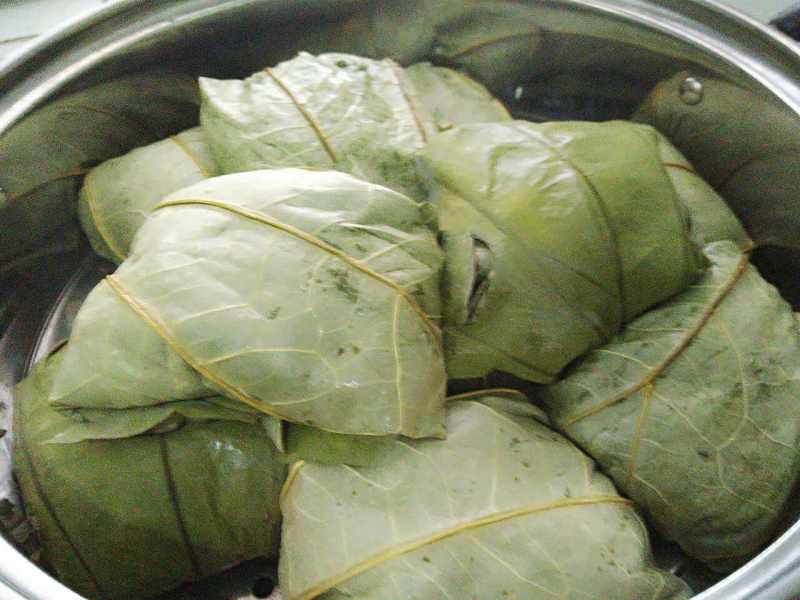 9:最好包好全部放上蒸30分就可以了(因为糯米饭我是蒸八分熟,所以要蒸多半个小)