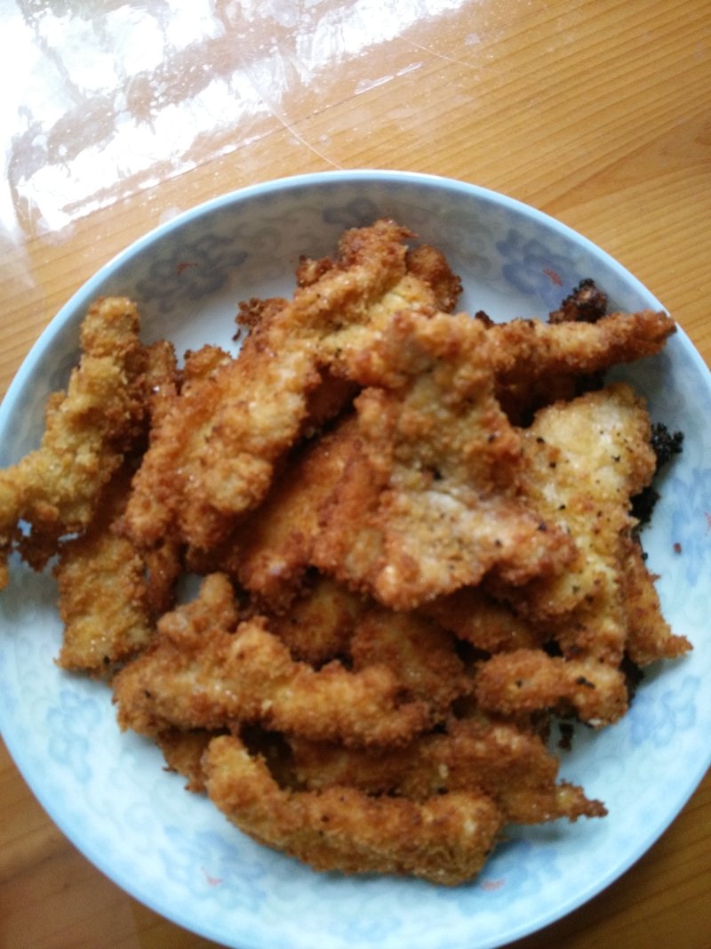 食盐适量;料酒适量;鸡精适量;黑胡椒粉适量;细砂糖适量;鸡蛋1个;面包糠适量;色拉油适量;番茄酱适量;生粉适量;