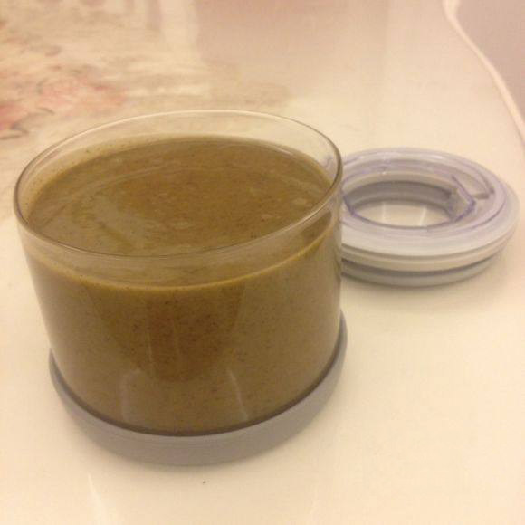 6:将核桃碎与橄榄油继续搅拌,直到成为细腻的泥状,核桃酱就做好了。用硅胶刮勺把搅拌杯壁上的核桃酱都刮入耐热玻璃密封罐中。(PS:所有接触核桃的容器都必须要干燥的,这样在保存中不会变质)。