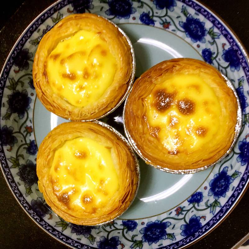 7:烤箱预热200度5分钟,放入蛋挞烤20分钟,(其实每个不同烤箱烘烤的时间也不同,所以注意观察,只要表面微焦,挞水凝固就差不多了)