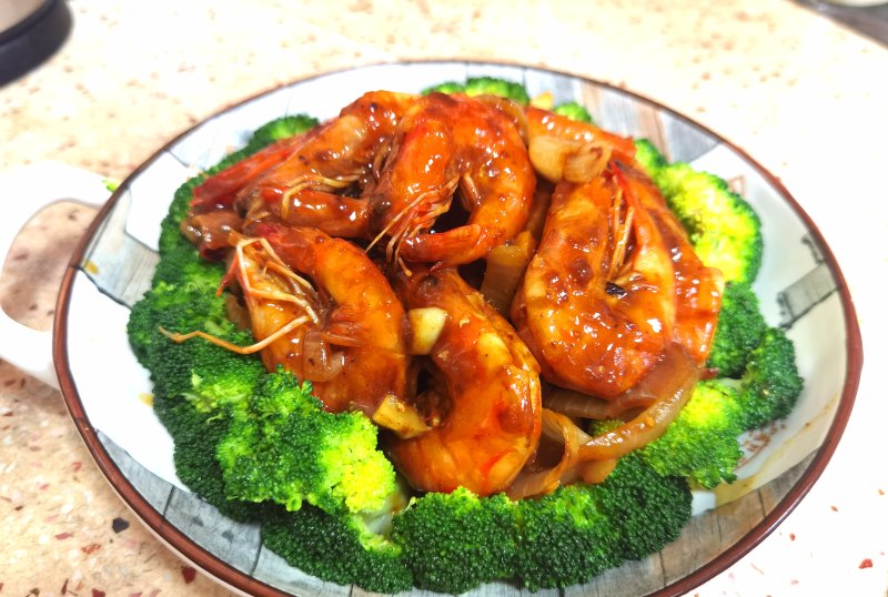 新鲜大虾一斤;洋葱一个;西兰花一个;