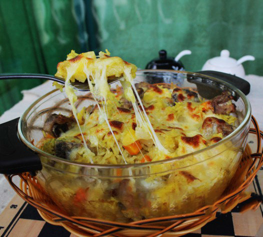 5:预热烤箱200度,把刚炒过的材料全部放进可以进烤箱的容器