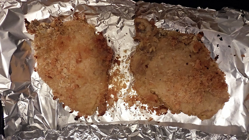 2:猪肉腌制好后沾鸡蛋-沾面包糠-沾鸡蛋-面包糠,到自己满意厚度,下油锅煎炸(注意,小火煎炸,防止大火外面糊了,里面肉不熟)