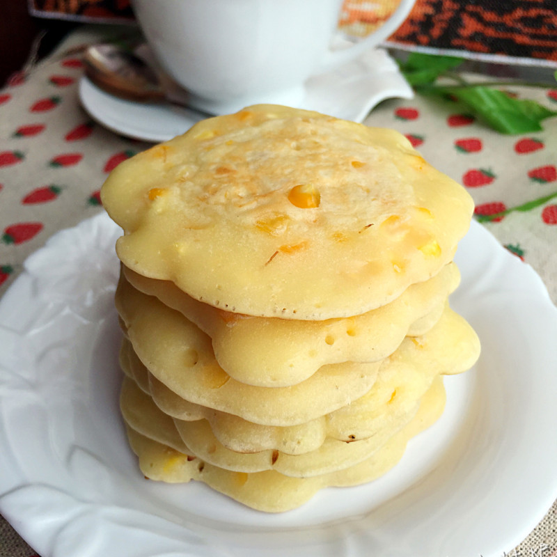 玉米粒30克;鸡蛋1个;牛奶40克;玉米油10克;低筋粉50克;无铝泡打粉1/2匙;