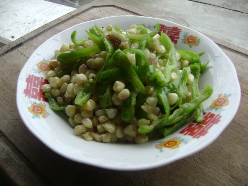 1:胡萝卜生菜、青椒洗干净,剥好玉米粒。