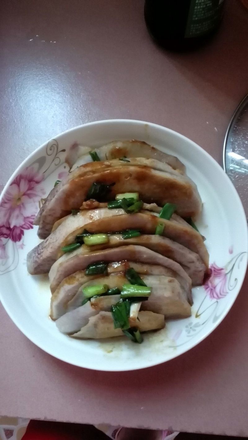 3:水差不多干了,再把切好的葱晒上去,倒入适量的酱油夹到盘子里把锅里剩余的汁淋上香芋上面就好了