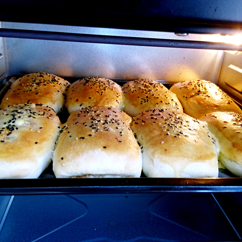 5:摆入烤盘,醒至15分钟,烤前表面喷水撒上芝麻