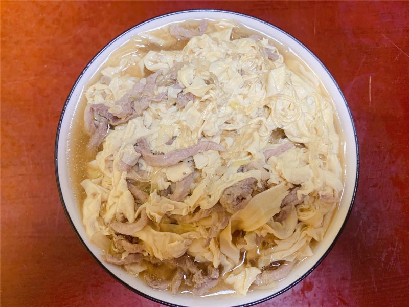 豆腐皮200克;土豆粉条100克;猪瘦肉50克;
