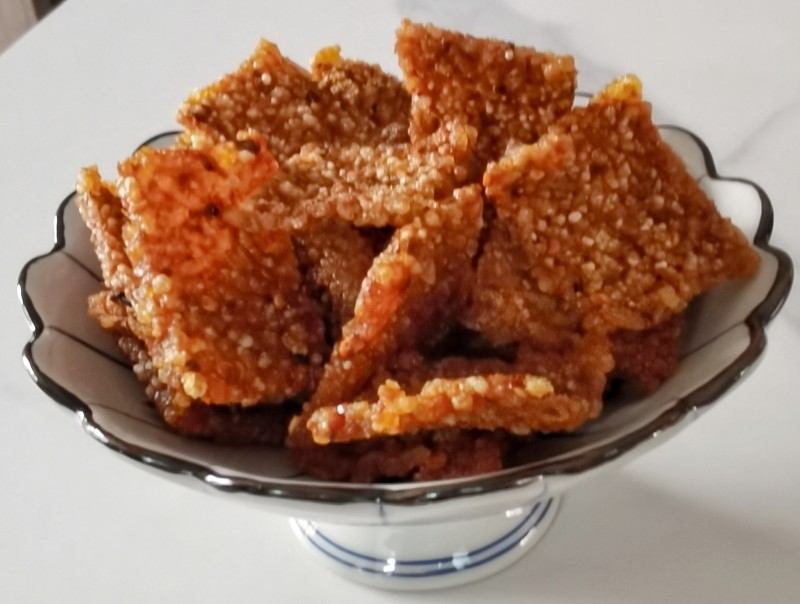 炸的过程中一定要小火中火来回调,千万不要火大。两面金黄就可以,因为出锅后,锅巴自身还是有温度的,一会就会颜色加深。如果在锅中颜色就已经很深了,那说明火大了。