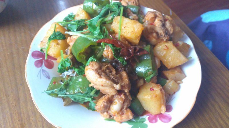 三黄鸡半只;土豆1个;胡萝卜1个;青椒1个;洋葱半个;