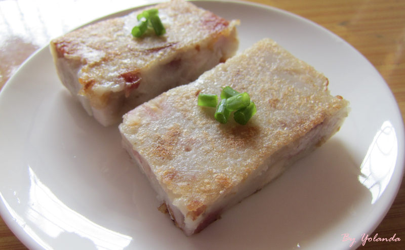 9:蒸好的芋头糕即可食用,但也可以油锅里再煎,味道会更好。首先是切成小块