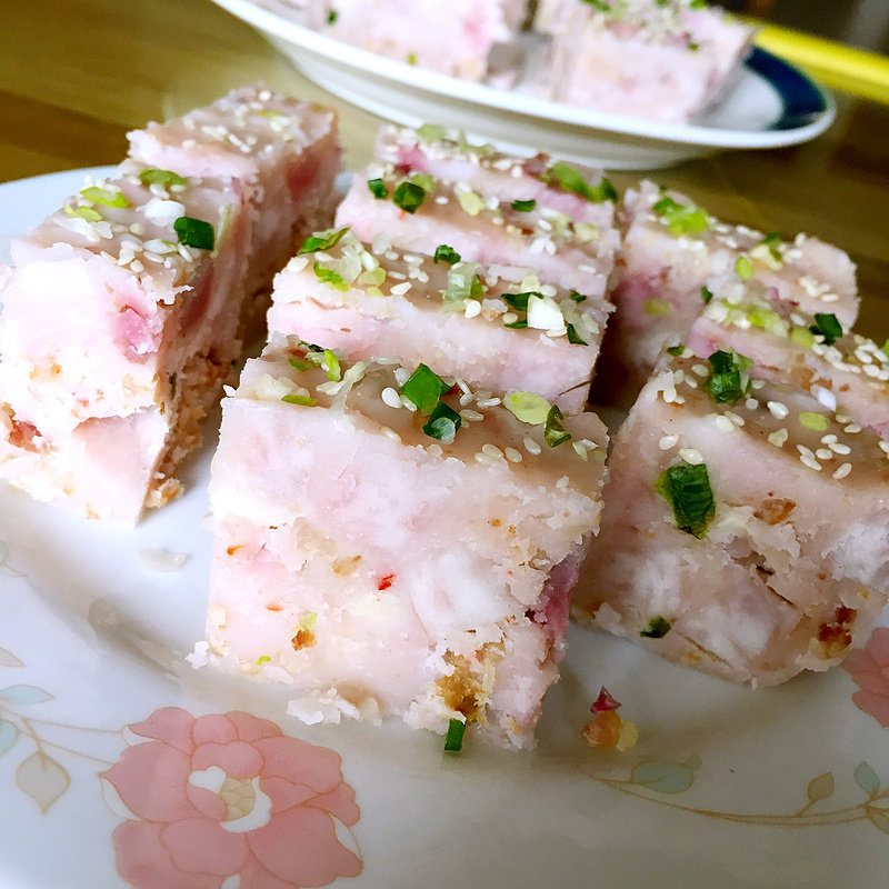 调味料可以根据自己喜好任意调整。蒸制时间需根据芋头糕的份量酌情调整。多而厚则所需时间长。彻底冷却后再切块,以免粘连,不成型。