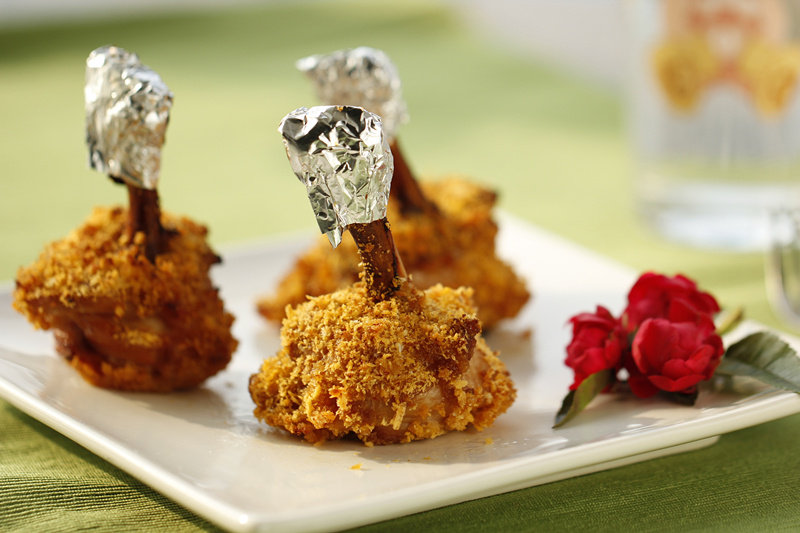 1.造型:先将鸡翅根底部连接骨肉的筋膜煎断,再用刀顺着骨头将鸡腿肉剔到三分之二处,最后将鸡翅根翻下来,这样一个可爱的小棒槌的形状就出来了;2.腌制:鸡翅根加入盐、葱姜蒜末、生抽、料酒和泰式辣椒酱(其实成品一点不辣,也可以用叉烧酱或者海鲜酱替换)等调味料,腌制时间在两个小时以上;3.炸制:将腌制入味的鸡棒槌表面裹上面包糠,最后炸熟即可;因为喜欢更健康也不想开炸锅,就用空气炸锅了。